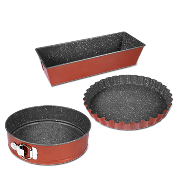 Includes three different shapes: loaf tin, tart tin and rectangular cake tin – perfect for a variety of sweet and savoury creations.